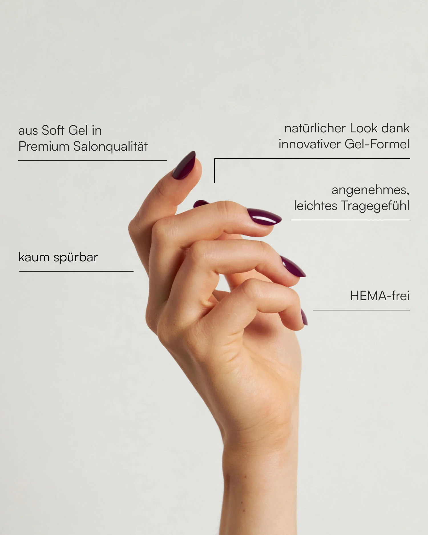 Mit Into You werden deine Nägel zum Gesprächsthema, egal wohin du gehst! Das dunkle Violett strahlt etwas Sinnliches, nahezu Geheimnisvolles aus und verleiht dir neben einem selbstbewussten Look auch einen Hauch Dramatik. Einfach anzubringen und sofort einsatzbereit, sind die Press Ons der perfekte Weg, um ein Statement zu setzen und deinen Look zu individualisieren.