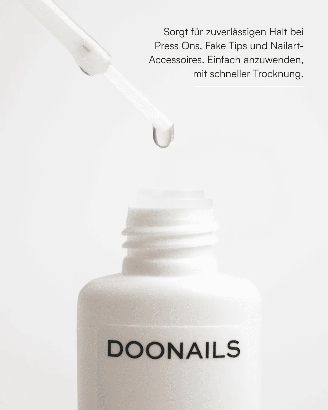 Der Doonails Nagelkleber ist die perfekte Wahl für alle, die sich lang anhaltende, stabile Fake Tips, Soft Gel Press Ons oder Nailart Accessoires wünschen. Dank der dünnflüssigen Textur und dem integrierten Pinsel lässt sich der Kleber einfach, präzise und sauber auftragen – also auch ideal für Nailart-Elemente wie Strasssteine. Er trocknet innerhalb kürzester Zeit und sorgt für starke Haftung zwischen Naturnagel und Kunstnagel, ganz ohne Verrutschen.